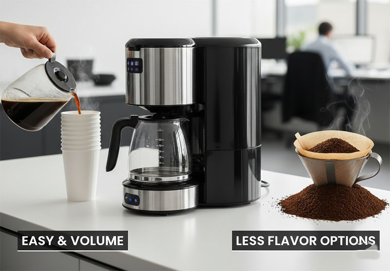 - Slower for Individuals: Waiting for a pot to brew can frustrate solo coffee runs.