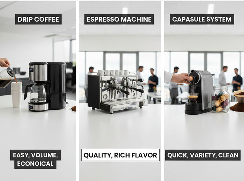 - Team Size and Habits: Drip for high-volume, low-drama offices; capsules for small, on-the-go teams; espresso for flavor-focused groups.